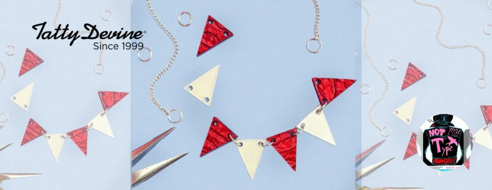 Tatty Devine Co-founder, Harriet Vine will be hosting a jewellery making class at Atom Gallery as part of the Not My Type exhibition! Book your Tickets for the Mini Bunting Workshop.
