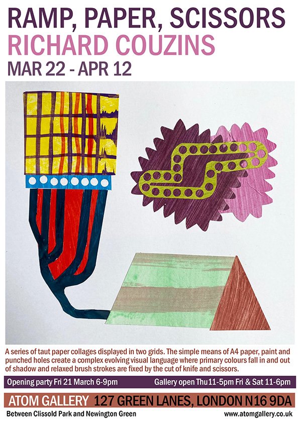 RAMP, PAPER, SCISSORS Past 22 May Written By Skye Hurwitz 22 March - 12 April 2025"Ramp Paper Scissors" - an exhibition of new collage work by Richard Couzins. Skye Hurwitz